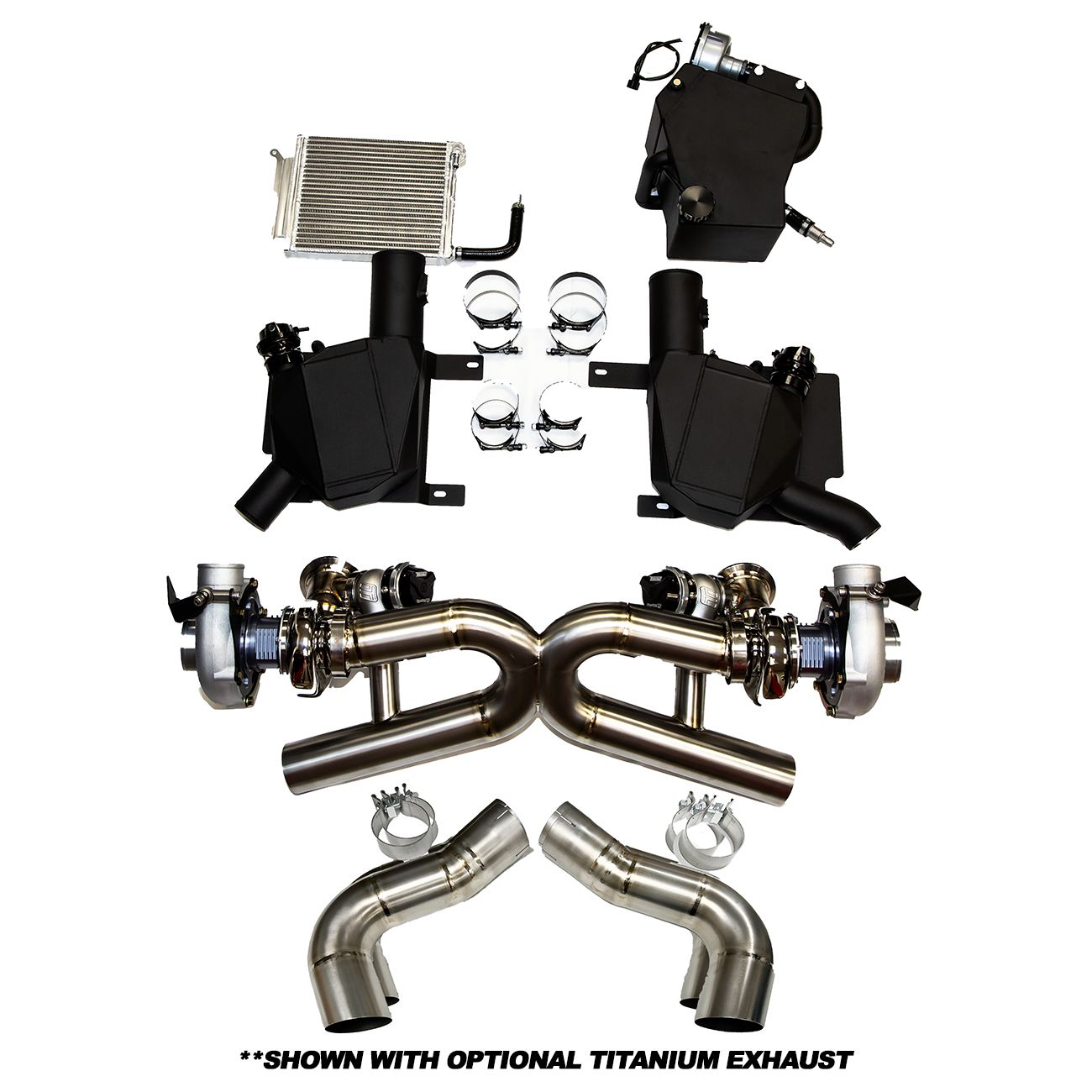 Built around our Gold Line Twin Turbo System, these packages offer power from 750WHP to 1100WHP. Featuring a stainless steel exhaust systems. All twin turbo packages are only for sale for in-house install or authorized installers.