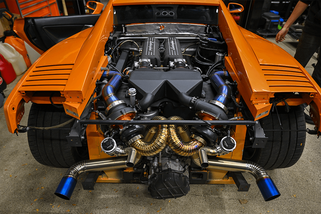 The original installation of the Twin Turbo Package, along with a bespoke titanium exhaust system, took less than six weeks to complete. Only when the car was on the dyno did we find underlying issues with the motor. These issues had to be addressed before we could move forward with the build's tuning phase for the engine's safety and longevity under the added stress of a twin-turbo system. Transforming the Twin Turbo build into a full-engine rebuild project while the Covid-19 Pandemic kicked off. As you can imagine, this led the whole project to a standstill as the world shut down. We tried to get parts from Lamborghini sources such as Lamborghini Polo Storico (Lamborghinis Classic Restoration Division), who still stocked these scarce parts. The waiting game started during those uncertain times. We need to stress the issues with a limited-run car, and finding specific replacement parts during a pandemic is nothing short of a nightmare.